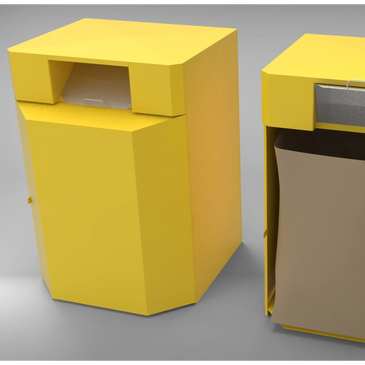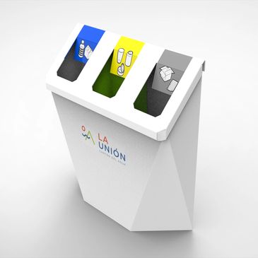El diseño integra la función de recolección de tres materias en el mismo recipiente, para eliminar los costos de superficies divisorias internas redundantes, lo que optimiza el uso de los materiales y reduce su impacto ambiental. En un primer diseño se usó cartón corrugado para fabricar el recipiente, sin embargo la exposición de los pasi