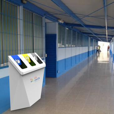 Las instituciones necesitan un recipiente de 50 litros de capacidad para recolectar desechos para reciclaje en sus instalaciones. En el caso específico de las escuelas públicas el recipiente debe estar fácilmente accesible pero no debe estorbar el tránsito. El recipiente tiene una forma novedosa que llama la atención y genera recordació